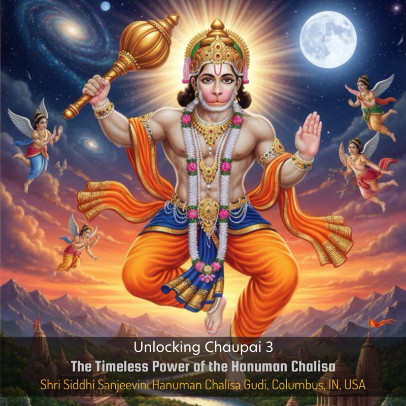 His Vikrama (mighty deeds) are countless — leaping across the ocean, defeating demons, bringing Sanjivani, and above all, conquering his own ego.